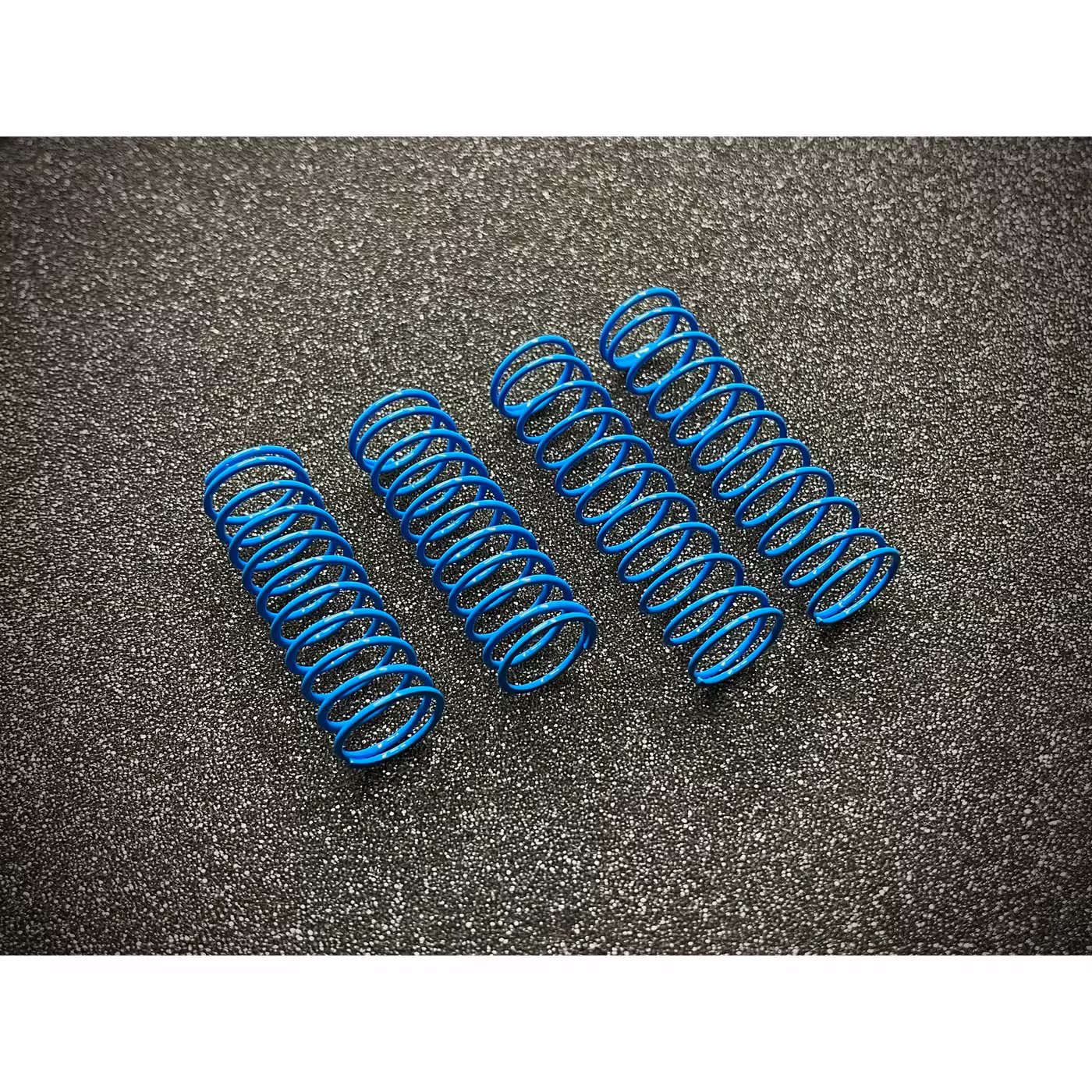 These reproduction Losi front and rear springs are just like our popular blue front and pink rear reproduction springs, but both front and rear have been powder coated blue just like what would have been found on the XX Kinwald Edition and other special spec versions. Front Spring Specifications: 3.8 lb/in 2” Free Length Ground Ends Direct Replacement for LOSA5134 Rear Spring Specifications: 2.3 lb/in 2.5” Free Length ground Ends Direct Replacement for LOSA5150 Made in USA