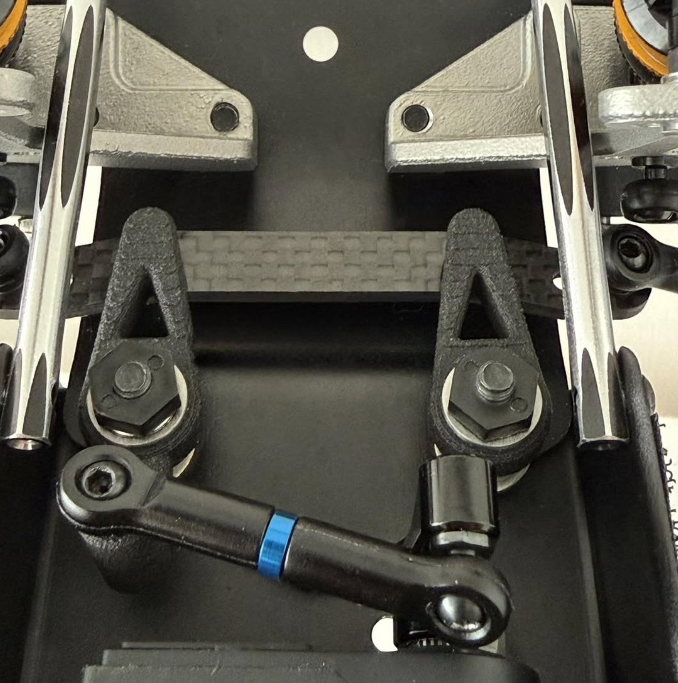 Neo Racing–designed bellcrank steering for RC10 horizontal servo setups. Requires hardware from the Factory Works ball bearing steering kit. A dedicated horizontal servo mount is currently in development.